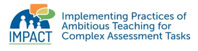The Implementing Practices of Ambitious Teaching for Complex Assessment Tasks (IMPACT) project employs performance assessments as a lever for instructional improvement by eliciting, centering, and advancing students’ thinking in middle school science classrooms. Through a research-practice partnership (RPP), our team aims to build foundational knowledge about how a large, urban school district implements and sustains a practice-based professional learning program. IMPACT professional learning (PL) is designed to transform the culture of assessment such that assessments become an integral component of ambitious, asset-based science instruction.